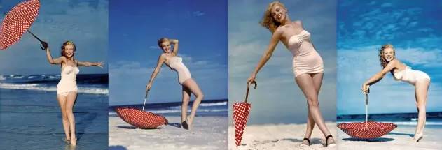 玛丽·莲梦露海边的雨伞写真俏皮热辣