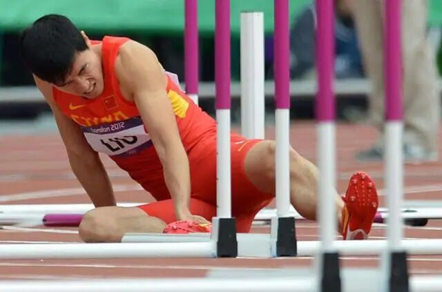 只可惜天不遂人愿,历史再度重现,在预选赛上,刘翔在跨过第一个栏时意外摔倒,最后只能单脚跳到终点无缘晋级。
