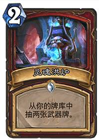 整体来说,灵魂洪炉可以进任何天梯主流战士的构筑里至少一张,弥补了战士没刀的时候的尴尬。期待与战士的英雄牌有什么相关联的互动吧。