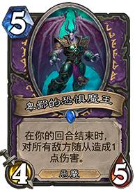 点评:新版本术士终于迎来了一个像模像样的恶魔随从啦。5费4/5身材略亏但是特效满分,尤其是在面对快攻和铺场卡组的时候。虽然术士本身就具备很多aoe清场法术,但是这些法术往往都有很大的负面性,可谓杀敌一千自损八百。而这张卡则像当初的小鬼爆破集解场与站场于一身,且本身又是恶魔可以被诸多法术所buff。唯一的问题在于费用偏高了,5费全场打1不能像法师的“挂起来烤”用来过墙,具备一定的延时性,不过和冠军包猎人的恐鳞比就强多了。