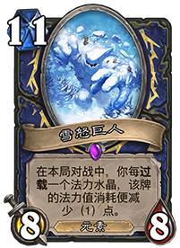 在竞技场里要抓他,要考虑的是,过载的牌有几张,能够减几费,如果巨人如果能减到5-6费下巨人就很赚了。是一张可选牌,和过载配合起来有些麻烦,还是建议抓高质量的随从。