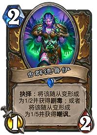 总体评价:非常灵活的抉择,变身后无论是加护甲苟活还是加攻击都蛮不错的,比利君十分的看好这张德鲁伊的英雄卡牌。期待他在新版本中的发挥吧~