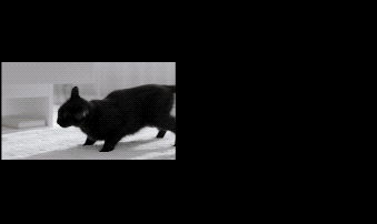 一只黑猫出现了,与家中的白色狗狗 Mango 形成了截然的反差,也和整个房间形成对比。它的出现是这个纯白世界中的巨大威胁。它不但与这个空间格格不入,甚至还引起不小的喧闹——身上的黑毛被抖落,四散在家具和地上。