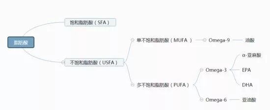 大多数的脂肪都是饱和脂肪酸、单不饱和脂肪酸和多不饱和脂肪酸的混合物,食物中的脂肪根据种类不同,所包含的脂肪酸种类有很大差异。