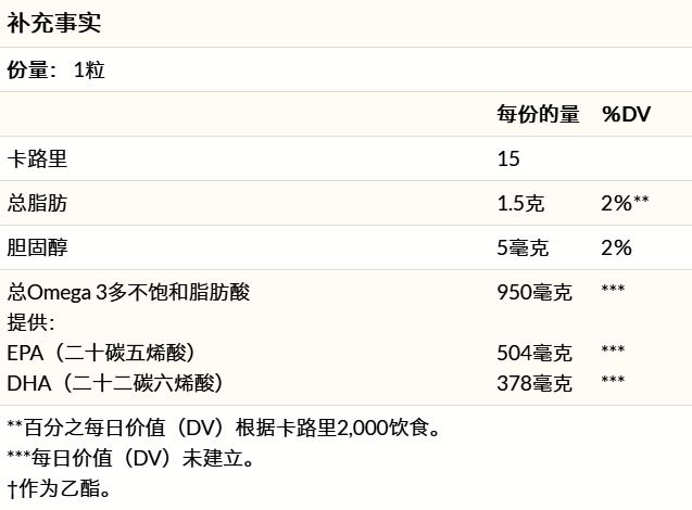 60%左右的鱼油浓度,也是比较不错的选择,额外摄入无用的脂肪量比上面那款高,但是DHA的摄入更好一些,如果能控制自己多减少一些饮食上的无用脂肪,那么这款也很不错。