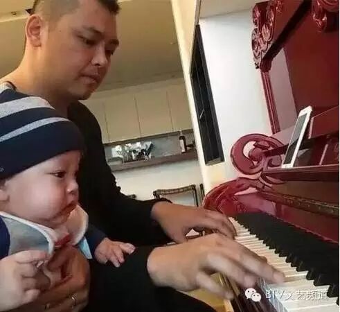 不过现在我们小V宝已经开始朝着艺人方向发展了,没事儿就跟着舅舅练练钢琴↓