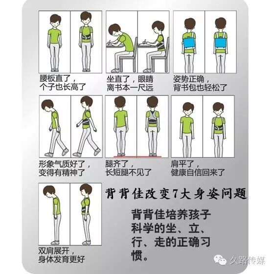 通过背背佳的专门为矫正身姿的独特设计,可以让使用背背佳的人,能够防止脊柱变形、预防近视加深、缓解肢体疲劳,除此,佩戴背背佳还可以挺胸,使您看上去更有气质,拥有挺拔的身姿。当然,正确的背背佳的使用方法也是非常重要的!