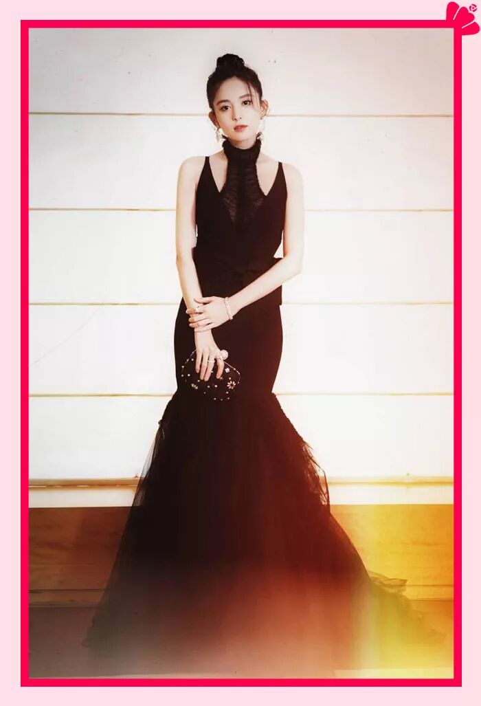 4月8日澳门,第23届华鼎奖暨中国电影满意度调查发布盛典。古力娜扎身着一身VERAWANG的永恒经典黑色定制鱼尾裙礼服,露出雪白的美背,搭配钻饰钉花的黑色手包。简直太好看了!