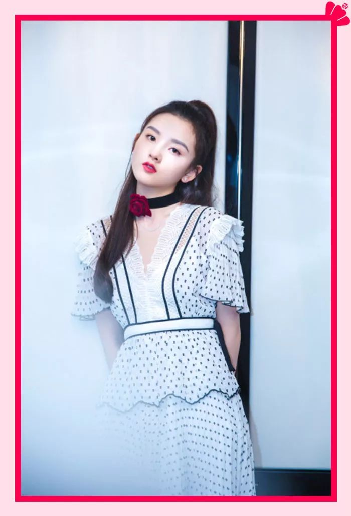 4月4日上海,95后小花宋祖儿出席某品牌发布会。一身公主风的白色波点蕾丝雪纺裙,银白色亮面一字带高跟凉鞋显得长腿笔直,颈间戴红玫瑰显人比花娇,笑容甜笑。
