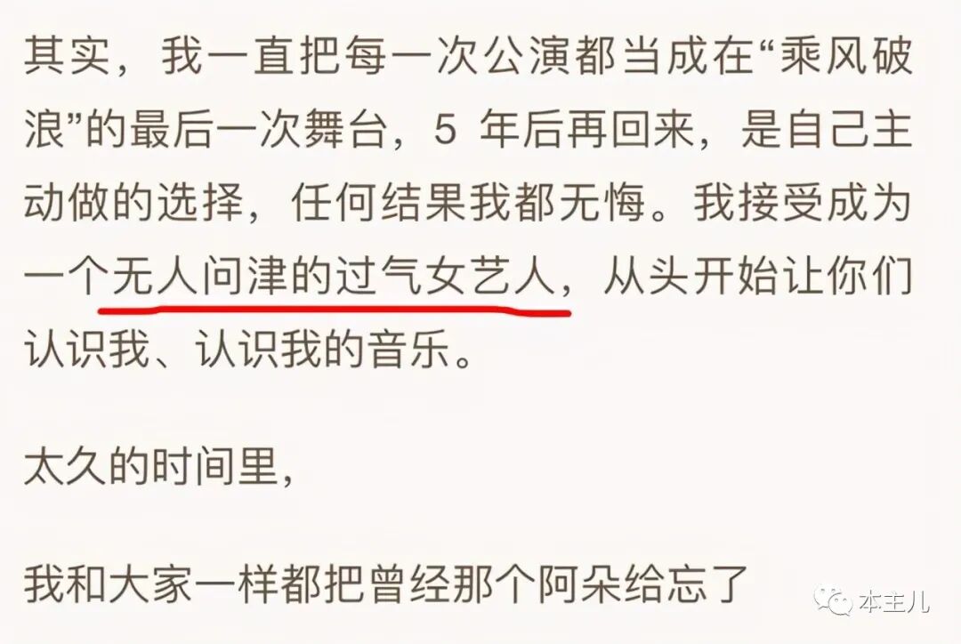 重拾信心充实自己,阿朵带着当年的初心回到了这个耀眼而又纷繁的舞台。