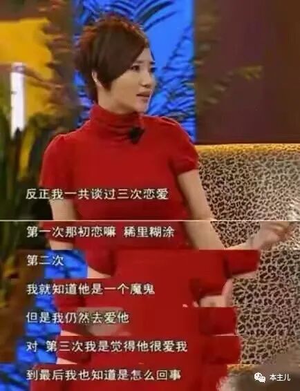 她一共有三段恋情,第一个初恋悄无声息的结束了,故事的情节比较普罗大众,是因为对方的不忠实并劈腿自己的闺蜜。
