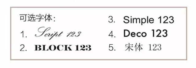 中英文都可以刻,可以选择5种字体(见上图),刻字数限定在9-12个字符。