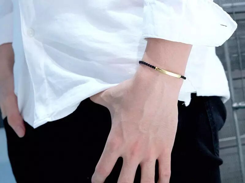 单戴一条手链,穿一件简单的纯色衬衫,袖子挽起一点。露出干净的手腕线条,走文艺气质路线的男生可以这样搭配。