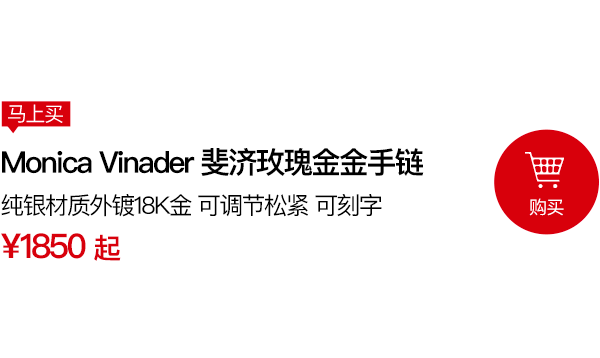 Monica Vinader的FIJI(斐济)系列是超模刘雯的最爱,她曾穿着复古摇滚的铆钉外套和亮片背心,搭配着斐济手链。