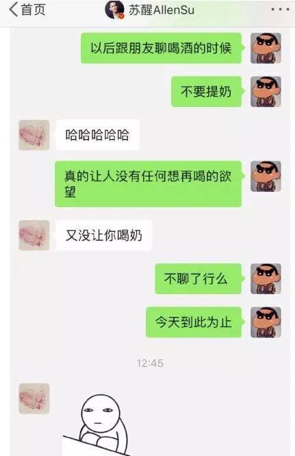 看名字是何洁没错了,两个人聊天的内容不过是平常朋友间的约酒,不过,何洁的回复就非常亮了!