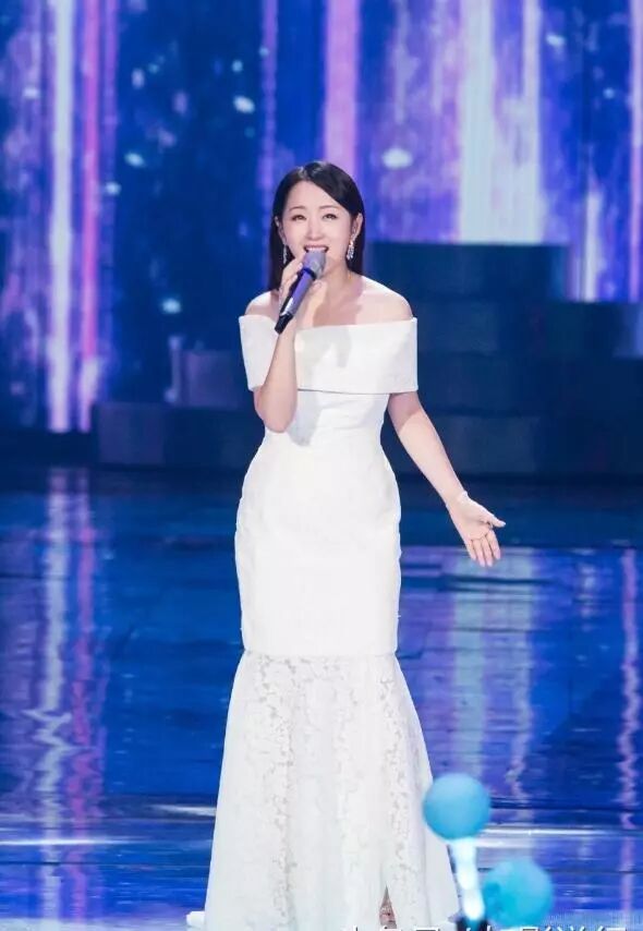 黑色长发彰显温婉迷人的气质,杨钰莹身穿一件白色礼服长裙女神范十足,一字领款式秀出优美的锁骨线条充满吸引力。