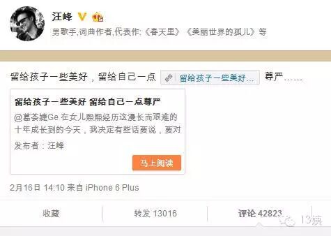 在汪峰这次长微博的评论里,再也没有排着队大骂渣男的盛况了,反而是各种力挺。