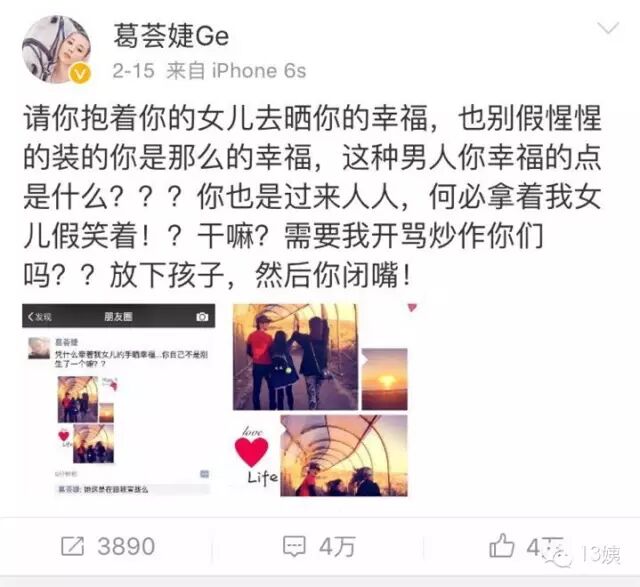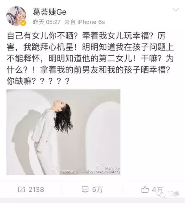 立马,葛荟婕就发作了一通,开始谩骂章子怡假惺惺、晒幸福、利用孩子炒作。