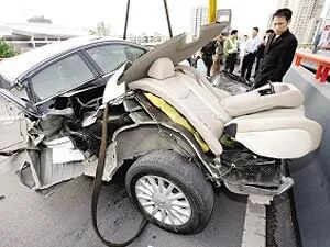 2006年日产天籁断裂事故现场图