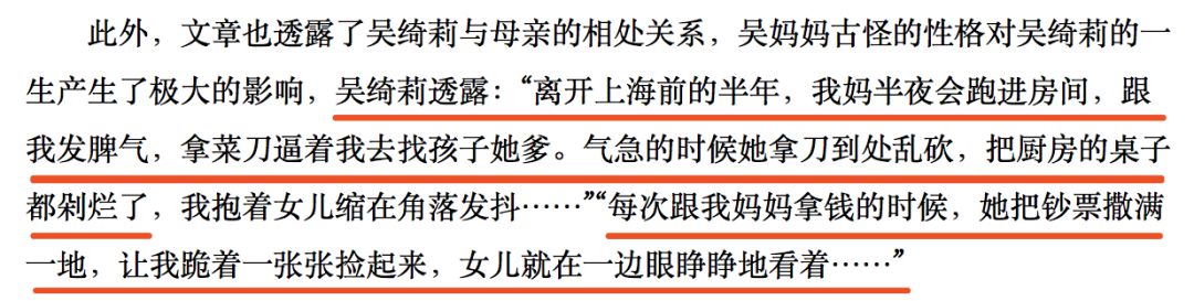 在一次访谈节目中,主持人问吴绮莉和母亲的相处模式。她坦言母亲的精神状态很不稳定,经常因为一点小事就对自己大吼大叫。