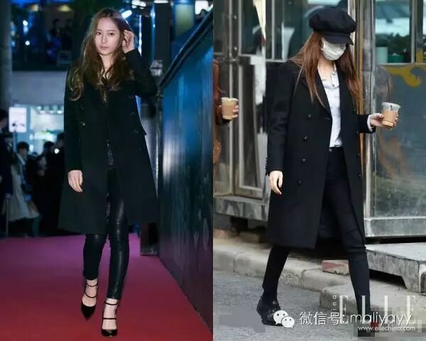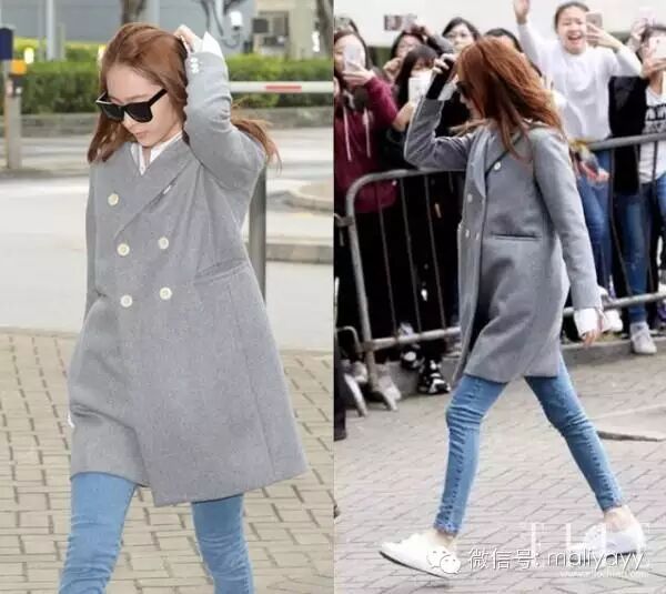 韩国的冬天比较寒冷,自然少不了挡风又保暖的长大衣相伴过冬!Krystal在穿着长大衣时,多用紧身牛仔裤和及踝短靴与它搭配。“上松下紧”的穿搭法则不仅能做到显瘦,贴身的牛仔裤款式还能提升下半身的保暖性!而且较长的大衣版型对大腿和臀部有肉肉的女生来说,也是“遮肉神器”,它能把你下身的缺点很好地隐藏起来。既然来不及减掉“秋膘”,不如将它好好藏起来吧!