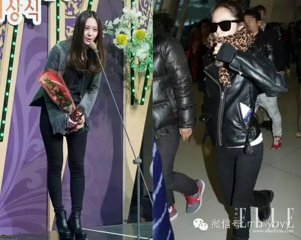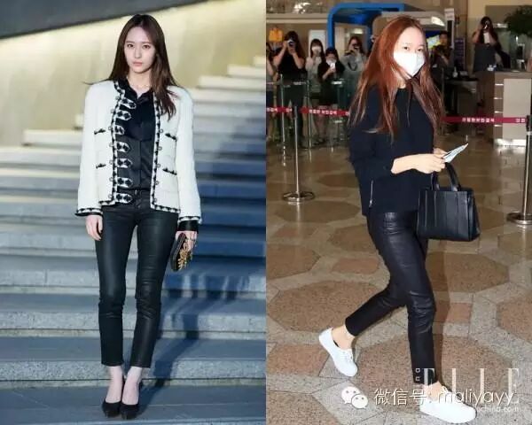 韩国女星一向对修身效果明显的窄腿裤青睐有加,其中也包括拥有一双匀称美腿的Krystal。无论是搭配宽松的毛衣外套或是干练的西装,只要有了窄腿裤加入,整体造型立刻就能变得更加精神!对热衷追求极简时髦风格的女生,这种简单的基本款单品组合搭配最适合你们啦!