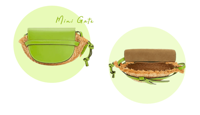 说回拼接款的Mini Gate,草编材质的运用其实仅在包包侧边,包包正背面依旧是小牛皮,这就完美避开了编织跟春夏薄衣物的刮蹭。跟其他size一样,迷你的背后也有环扣条,便于凹造型时候抓在手里。