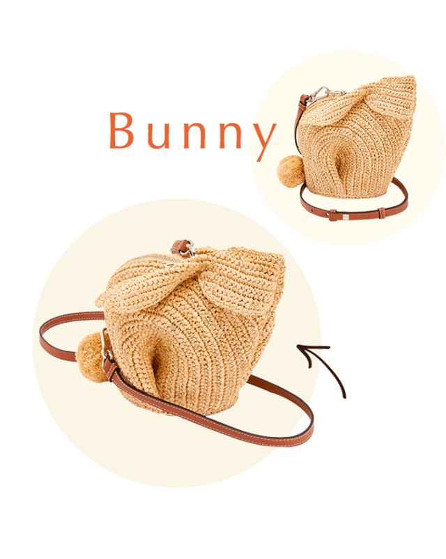 这种拉菲草还用在了Bunny “小兔子”身上。拉菲草可不是普通的稻草,它也叫许愿绳或爱情草,来自非洲的马达加斯加。因为它不怕水且极其牢固,也被人们视为爱❤️情草,寓意人们要始终如一、坚贞不拔。