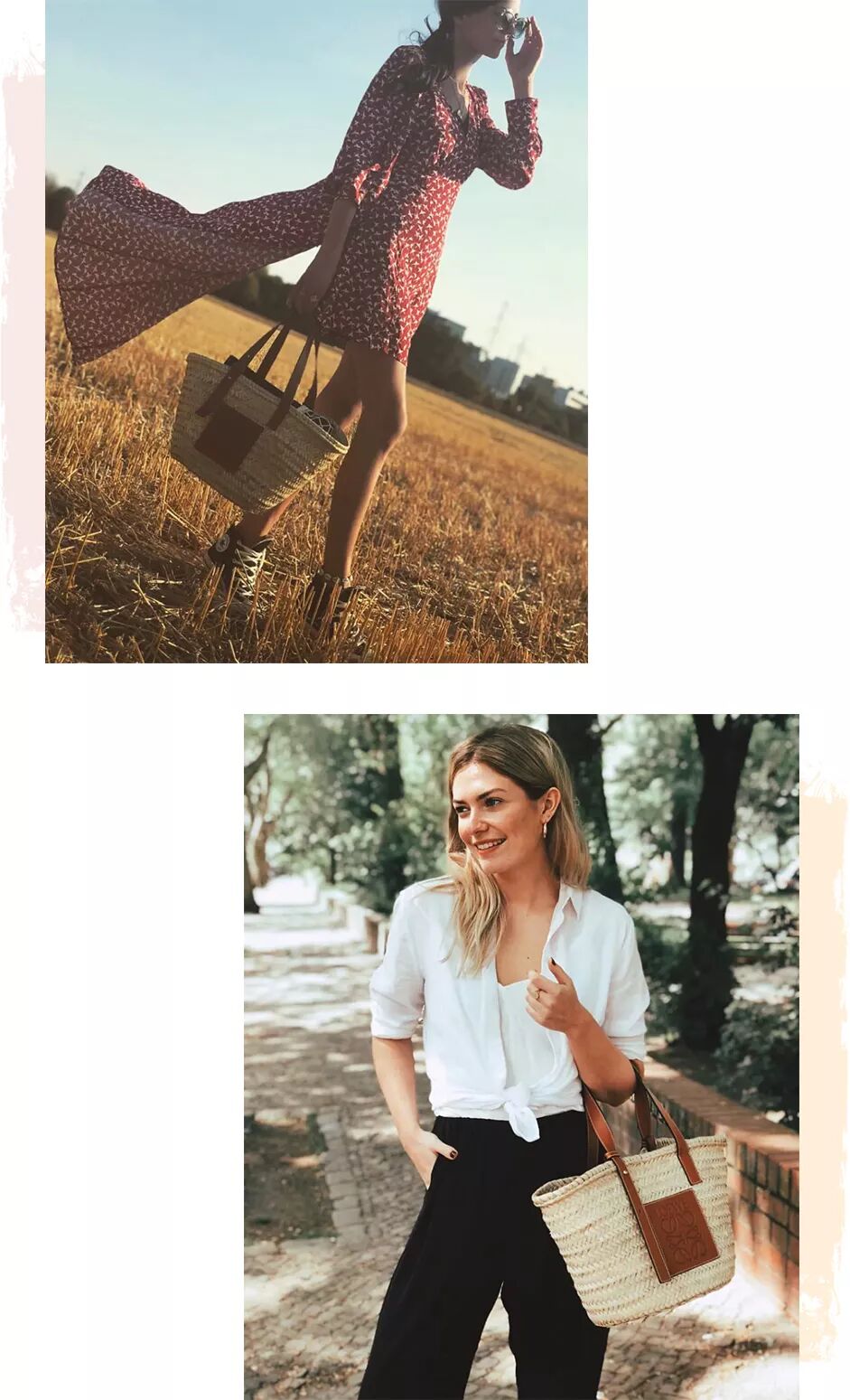 说到篮子本身,光是看街拍就被它吸引了,清新文艺的气息,仿佛从阳光中走来的氧气美女。