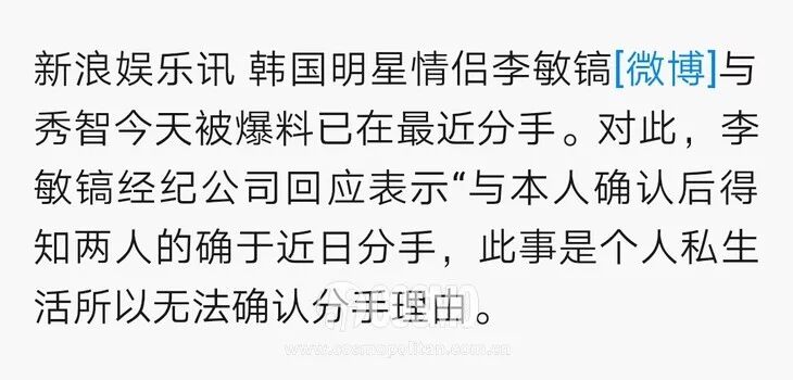 不得不提一句,在韩流圈,近年来的年轻情侣谈恋爱时间长不过两年的太多太多了。李敏镐和秀智这段恋爱还算长命的恋爱。