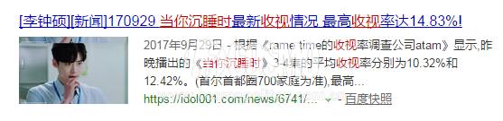 今年跟李钟硕合作的《当你沉睡时》收视保持在同档次一位,还有单集达到双数收视率的成绩。可以说口碑和收视基本实现双赢。