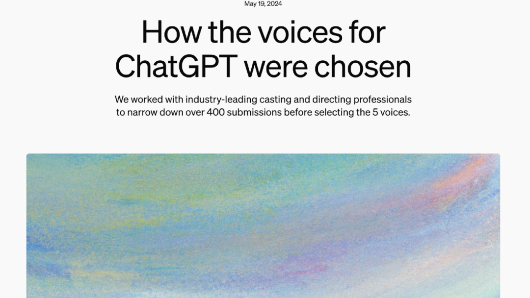 OpenAI称,他们从400个声音中挑选了五个月,才选出了GPT-4o的五个声音(分别是Breeze、Cove、Ember、Juniper 和 Sky)。他们和专业配音演员、经纪公司、选角导演和行业顾问合作完成了这个工作。
