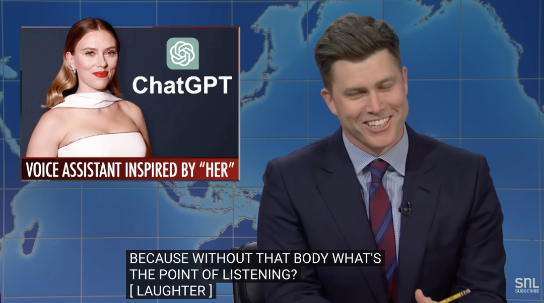 发布会之后,所有人都发现Sky的声音像约翰逊了,美国国民节目《周六夜现场》还公开吐槽GPT碰瓷,说不知道追求那个声音意义何在,如果声音离开了约翰逊本人的身体那谁还想听呢。