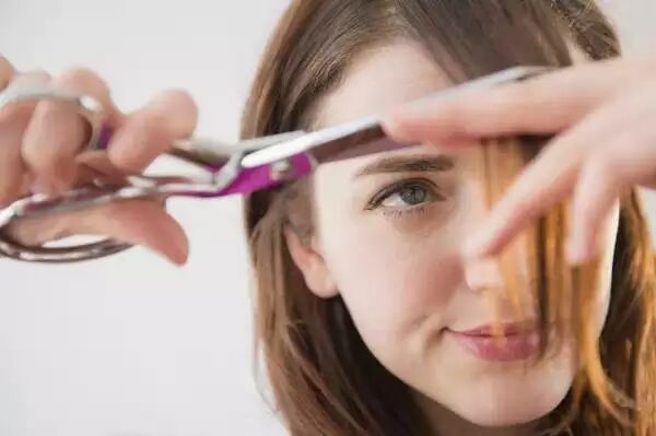 STEP1:如果你有剪刘海的经验,对自己有信心的话,你可以直接平着剪,但要注意好刘海的长度,可以稍微过眉一些,方便待会修剪。