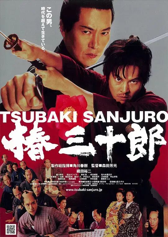 郊外神社的神殿里,九位年轻武士在秘密开会,城代家老的外甥井坂(松山健一饰)准备向大目付菊井求助揭露内部问题。但外貌邋遢的武士椿三十郎(织田裕二饰)出现,告诉他们菊井才是背后的黑手。果然,神殿很快被大目付手下团团围住,三十郎出手替年轻人解危,而室户半兵卫(丰川悦司饰)却欣赏三十郎的身手,欢迎他加入。之后,三十郎与九人组去找城代家老,却发现晚了一步已被绑架。