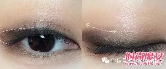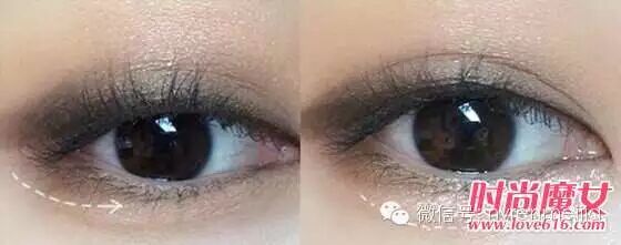 STEP5:将上眼尾的深灰色眼影稍微晕染一点到下眼尾,如图。