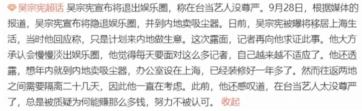 其实,是相关媒体爆出了吴宗宪想要退圈的想法,
