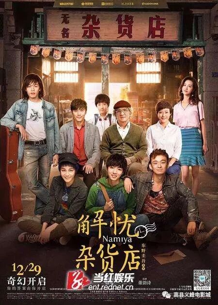 改编自东野圭吾原著同名小说《解忧杂货店》,讲述了在一家僻静街道旁的杂货店,只要写下烦恼投进店前门卷帘门的投信口,第二天就会在店后的牛奶箱里得到回答。某个夜晚,三个身在迷途的年轻人阿杰、小波、彤彤无意闯入,没想到开启了时光隧道,从收到来自过去的第一封咨询信开始,在不断的回信和收信过程中,过去链接了未来,犹豫是否该坚持音乐梦想的秦朗、是否该和家人因逃债远走他乡的浩博、是否应该放弃舞女工作的晴美都从他们的回信建议做出了选择,找到了心灵的方向,不经意间也串联了所有人的人生。同时这三个年轻人也收到了对于自己困惑的解答。