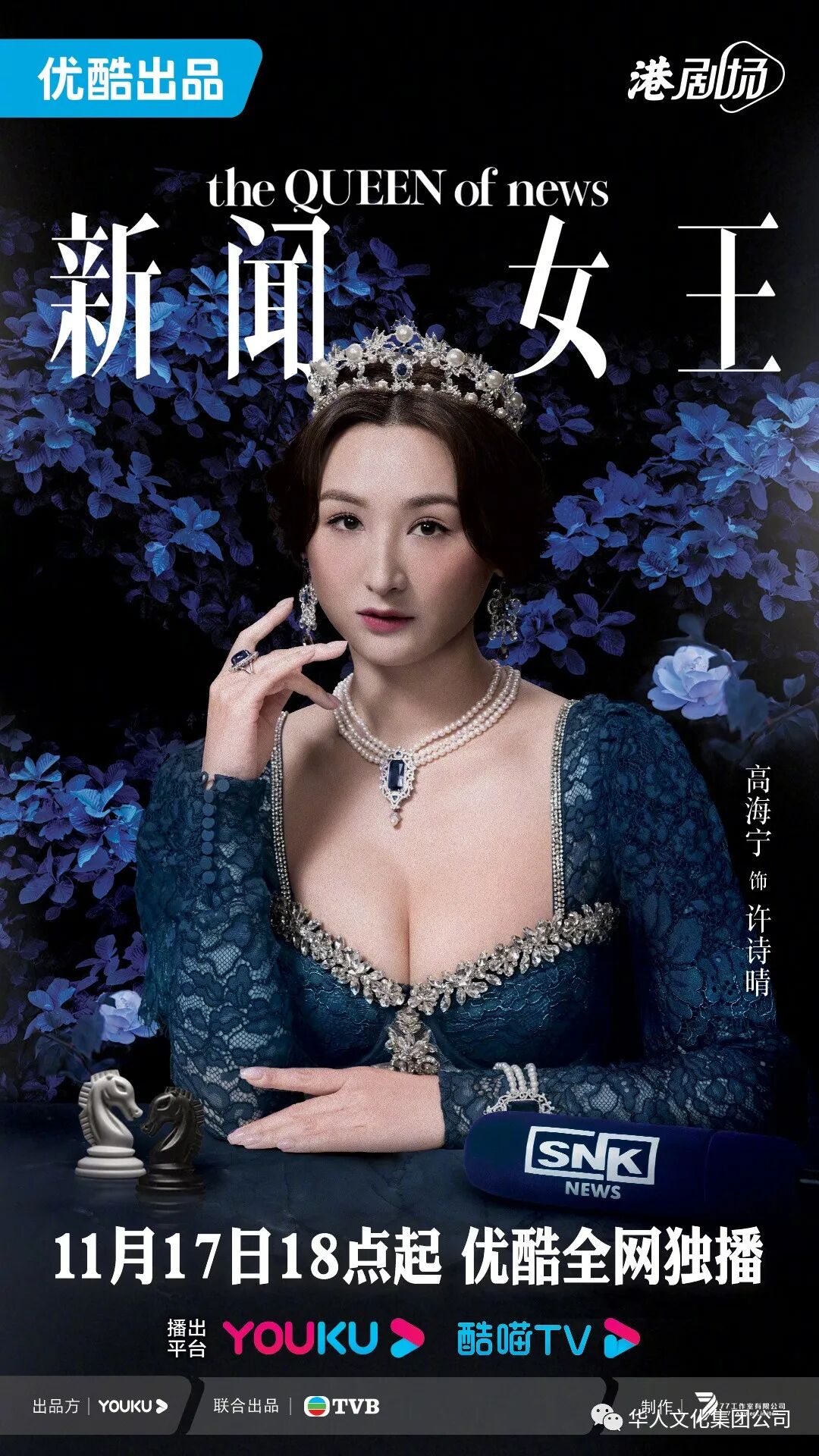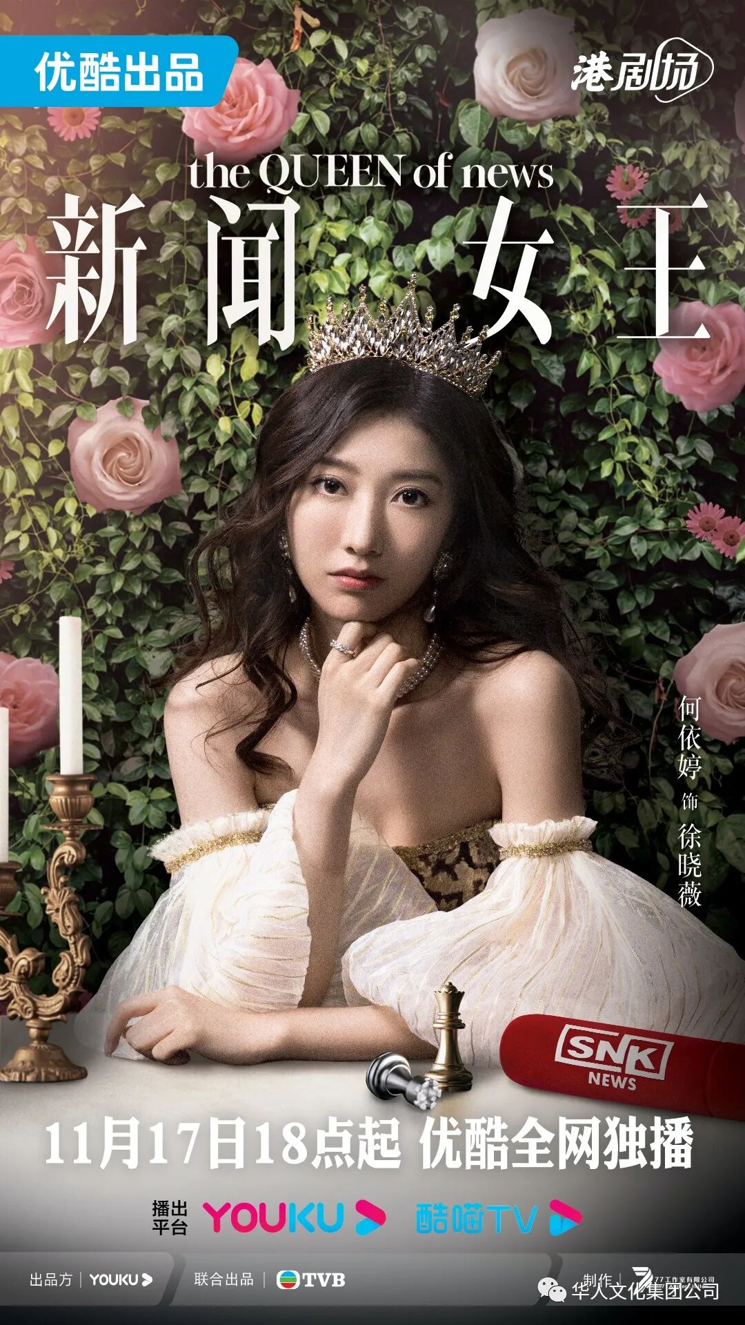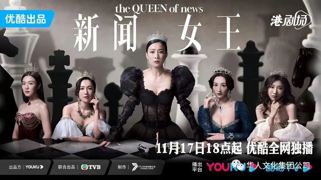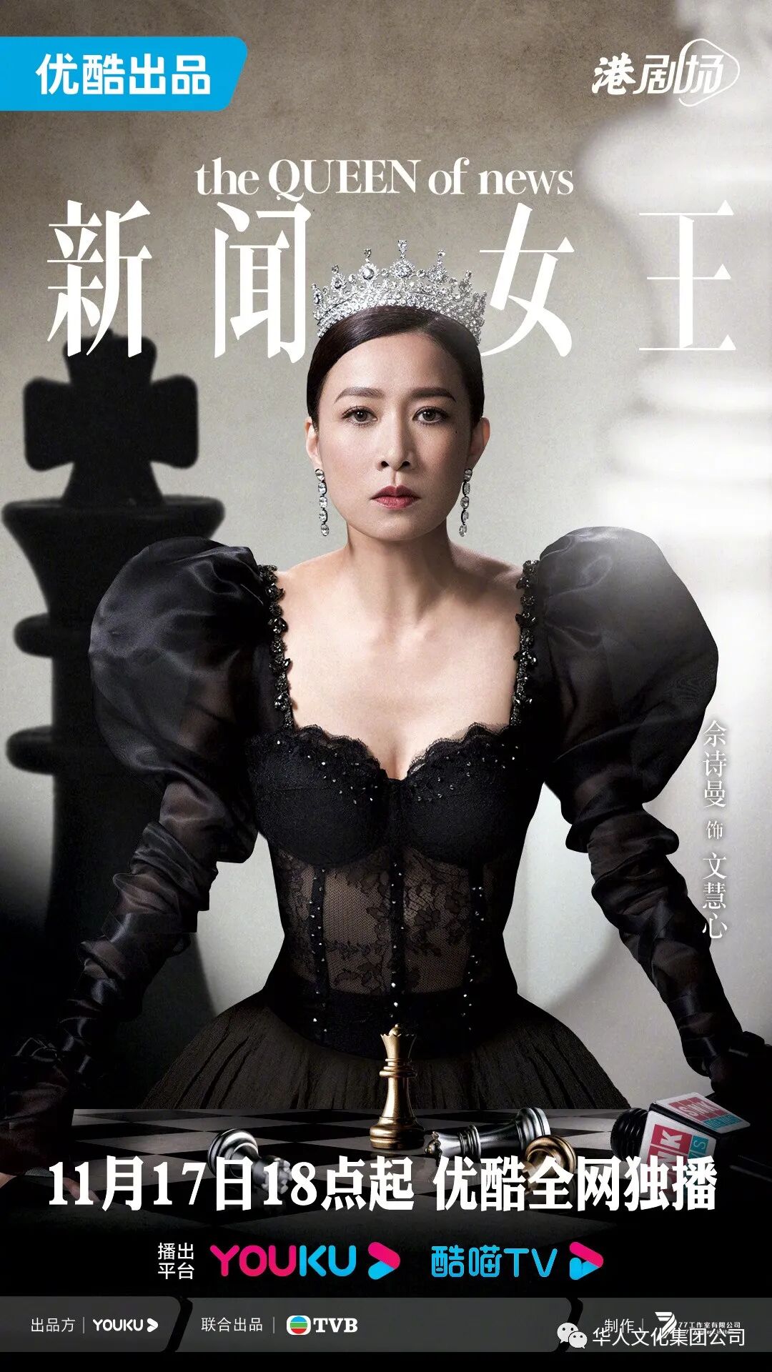 由香港TVB与优酷联合制作,谢颖、钟澍佳总监制、关文深监制的TVB台庆剧《新闻女王》近日官宣定档,该剧将于11月17日在优酷港剧场全网独播,并于11月20日晚上八点半起在翡翠台隆重登场。《新闻女王》讲述了新闻主播文慧心为攀上管理层之位,与对手缠斗、同良知拉扯,在权力间不断游走的故事。