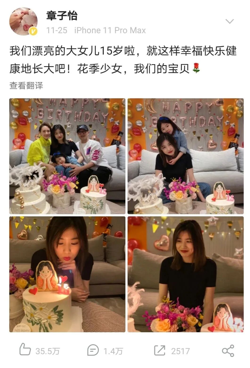 前几天,章子怡在微博上,晒出了给大女儿庆祝15岁生日的照片。