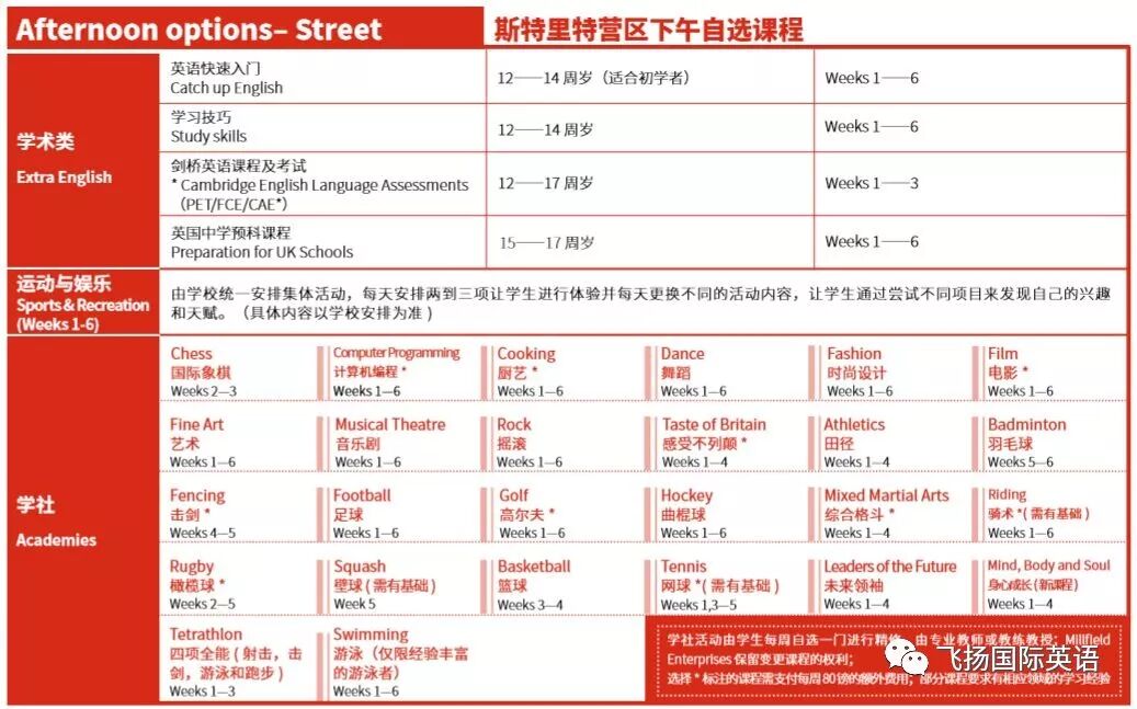 下午Academy(学社)另行收费的部分专业教练课程(如马术、高尔夫等,参见简章中具体收费项目,每周另加80英镑,热门项目会较快定完,请尽早缴款留位)