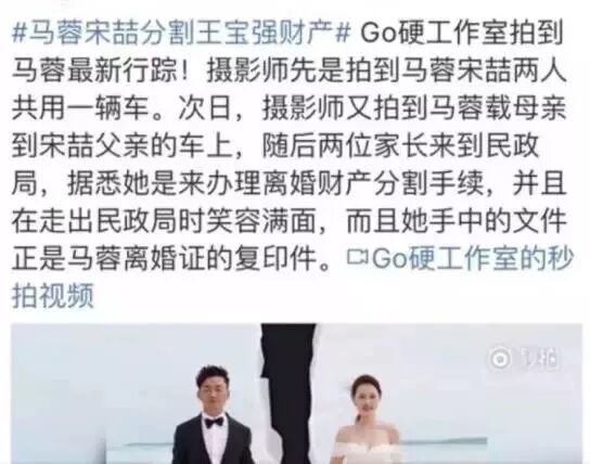 据说当时王宝强跟mr还在走离婚程序的时候,被拍到mr、sz以及mr妈、sz爸一起出入民政局,当时以为是mr与wbq离婚手续;后来有人出来辟谣说当时其实是马蓉妈和宋喆爸办离婚!