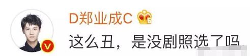 此消息发出后,立刻遭到郑业成本人吐槽:这么丑,是没剧照选了吗?