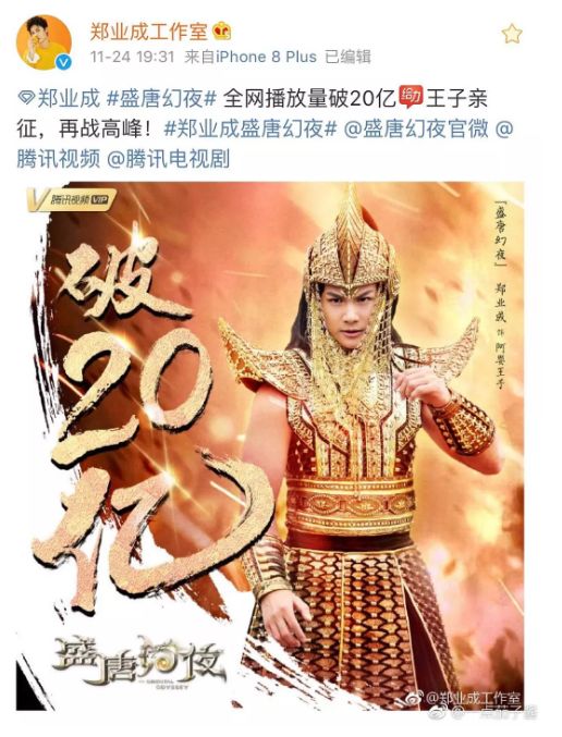 而在此剧播出期间,郑业成工作室po出一张照片,庆祝此剧突破20亿!