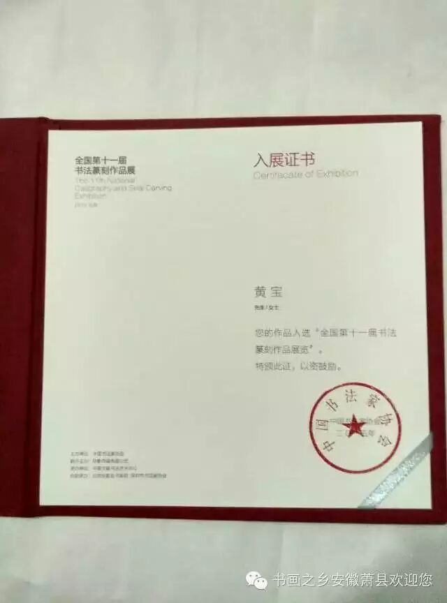 本届国展共收到作品42572件,其中河南省来稿4264件,山东省来稿4096件,安徽省来稿3804件,江苏省来稿3055件,广东省来稿2631件。本届国展评审以习近平总书记在文艺工作座谈会上的讲话精神为指导,坚持“二为”方向和“双百”方针,把握正确的艺术导向, 弘扬中国精神,凝聚中国力量,承续中华文脉,陶铸时代审美;以植根传统、鼓励创新、艺文兼备、多样包容为审美要求,以公平、公正、公开为评审原则,努力推出精品和人才。经评委会严格评审,最终共有681件作品入展(其中书法作品608件,篆刻作品60件,刻字作品13件), 黄宝老师的刻字作品是安徽省唯一一件入展作品。