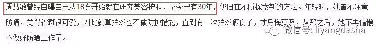 周慧敏曾自曝平时自己非常注重皮肤的保养,但绝对不会“搞大动作”,也不爱去美容院:“不自然的东西我都不鼓励。对我来说,人在经过种种阅历后流露的知性美才值得欣赏。”