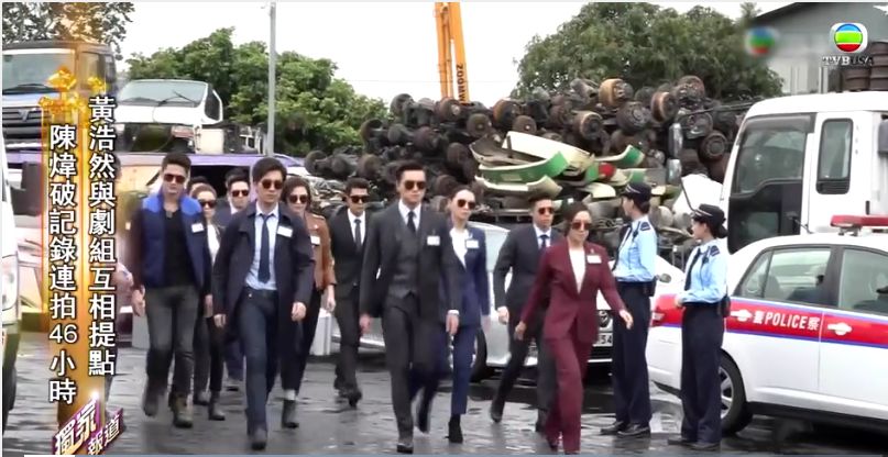 新剧<法證先锋4>正在拍得如火如荼, 那日陈炜黄浩然等一众演员去到废车场,拍摄一场搜證的拍摄部分戏剧。