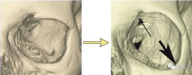 注意看右图的黑箭头所指,就是我们的眶骨在衰老过程中,骨吸收发生的位置。