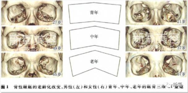 通过实验对照发现男女性的眶骨吸收情况也大不相同,女性眶上缘有整体的骨吸收,眶下缘的骨吸收只发生在眶外侧1/3,出现早且持久。