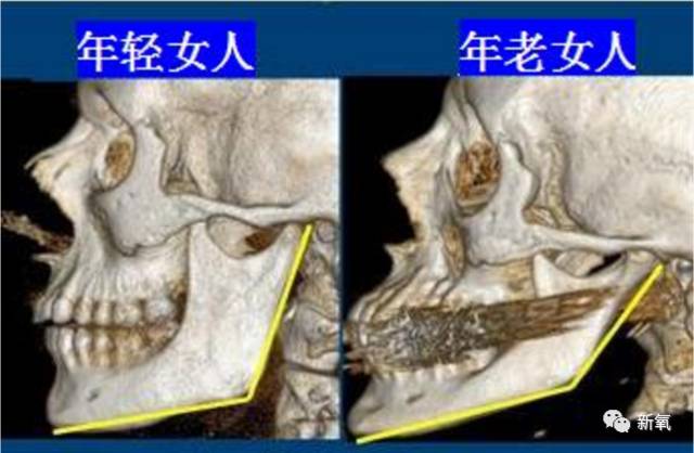 下颌骨的老龄化主要表现为:骨骼缩小及轮廓的变化,这个特点决定了下面部的老龄化形态。